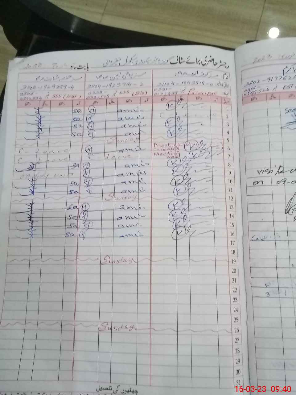 | CNIC | Full Name | Designation | R/C | Absence During Last Calender Month |