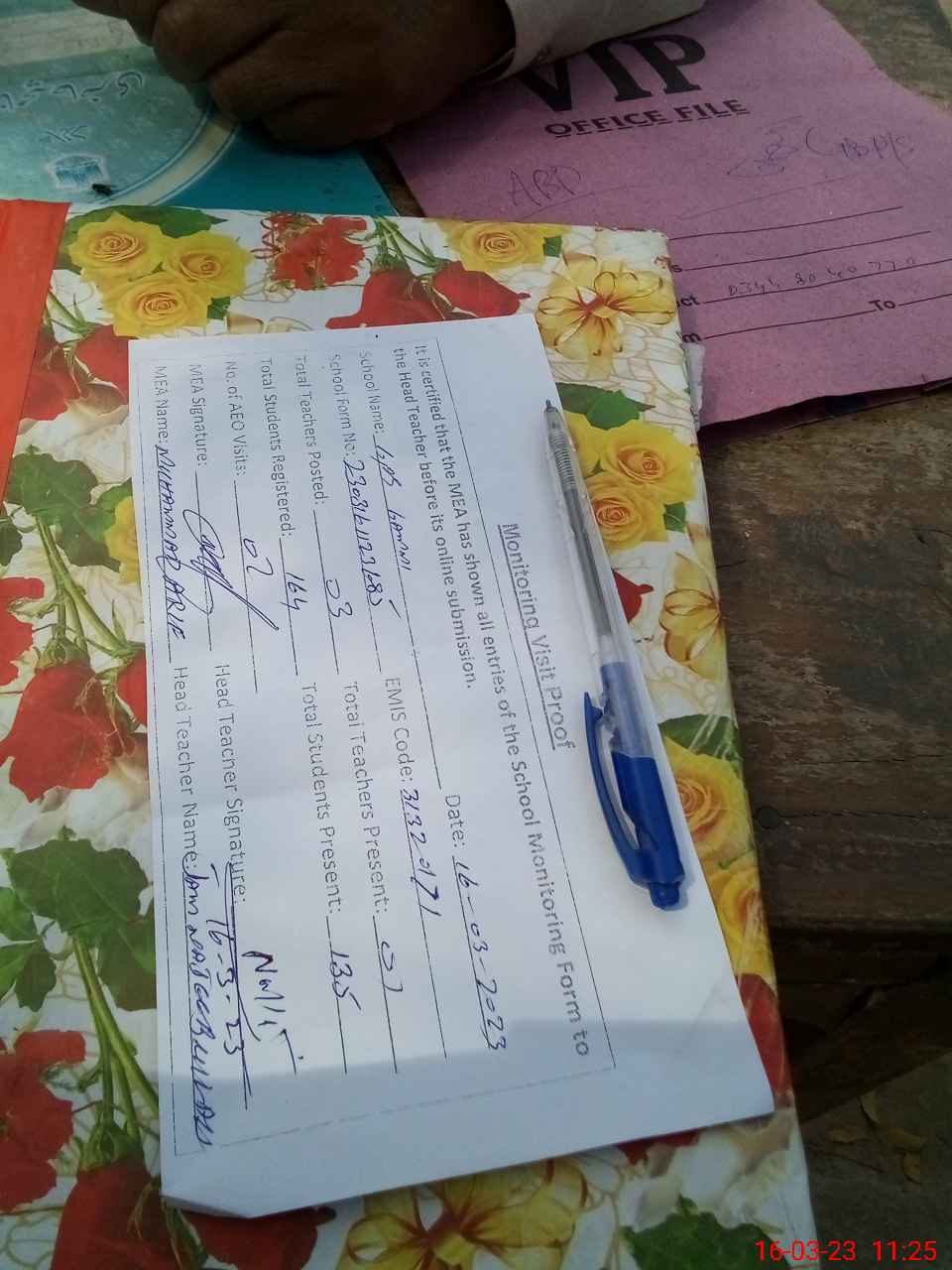 | Attendance Register | Head Teacher | MEA with School | Visit Proof |