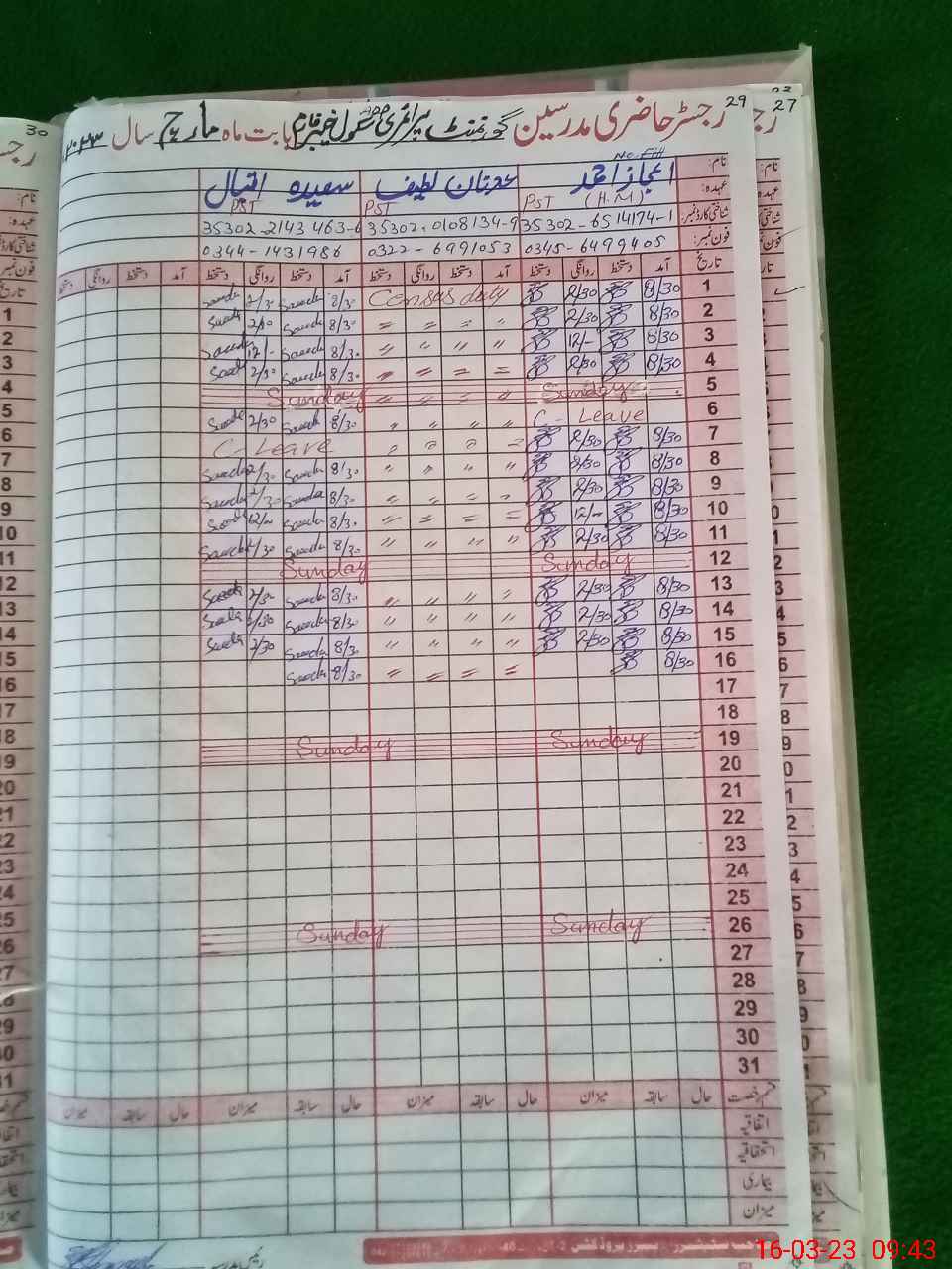 | CNIC | Full Name | Designation | R/C | Absence During Last Calender Month |