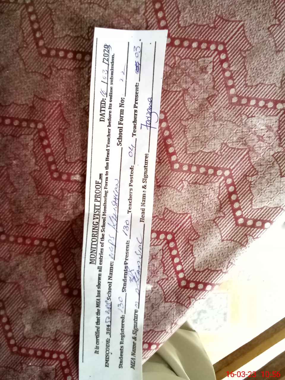 | Name: FA**** MA**** Designation: (School Headmaster's/Headmistress's) PTC/JV Phone/Cell Number: 03**** |