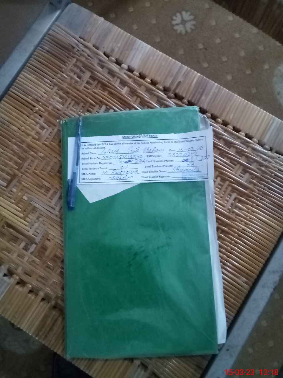 | Attendance Register | Head Teacher | MEA with School | Visit Proof |