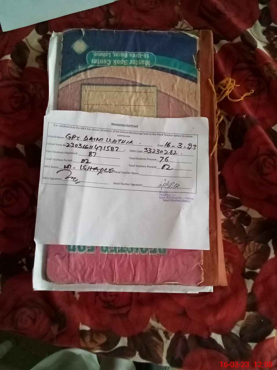 | EMIS Code: 33230282 | Name of School: GPS QAIM KATHIA | |||