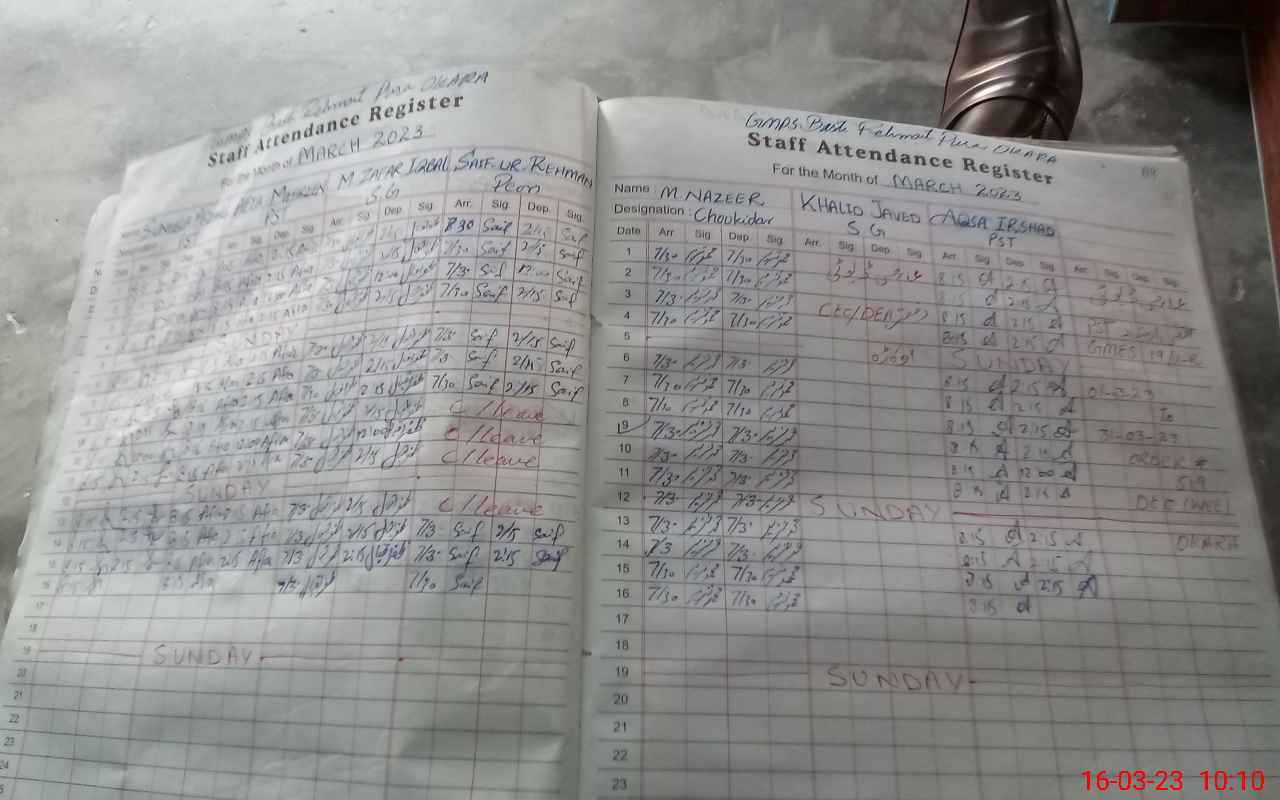 | CNIC | Full Name | Designation | R/C | Absence During Last Calender Month |