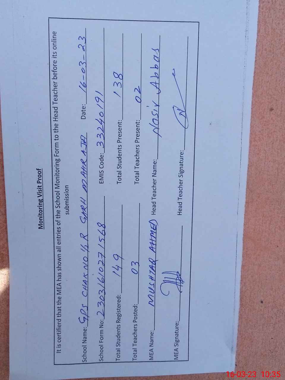 | EMIS Code: 33240191 | Name of School: GPS CHAK NO 1/2-R GARH MAHRAJA | |||