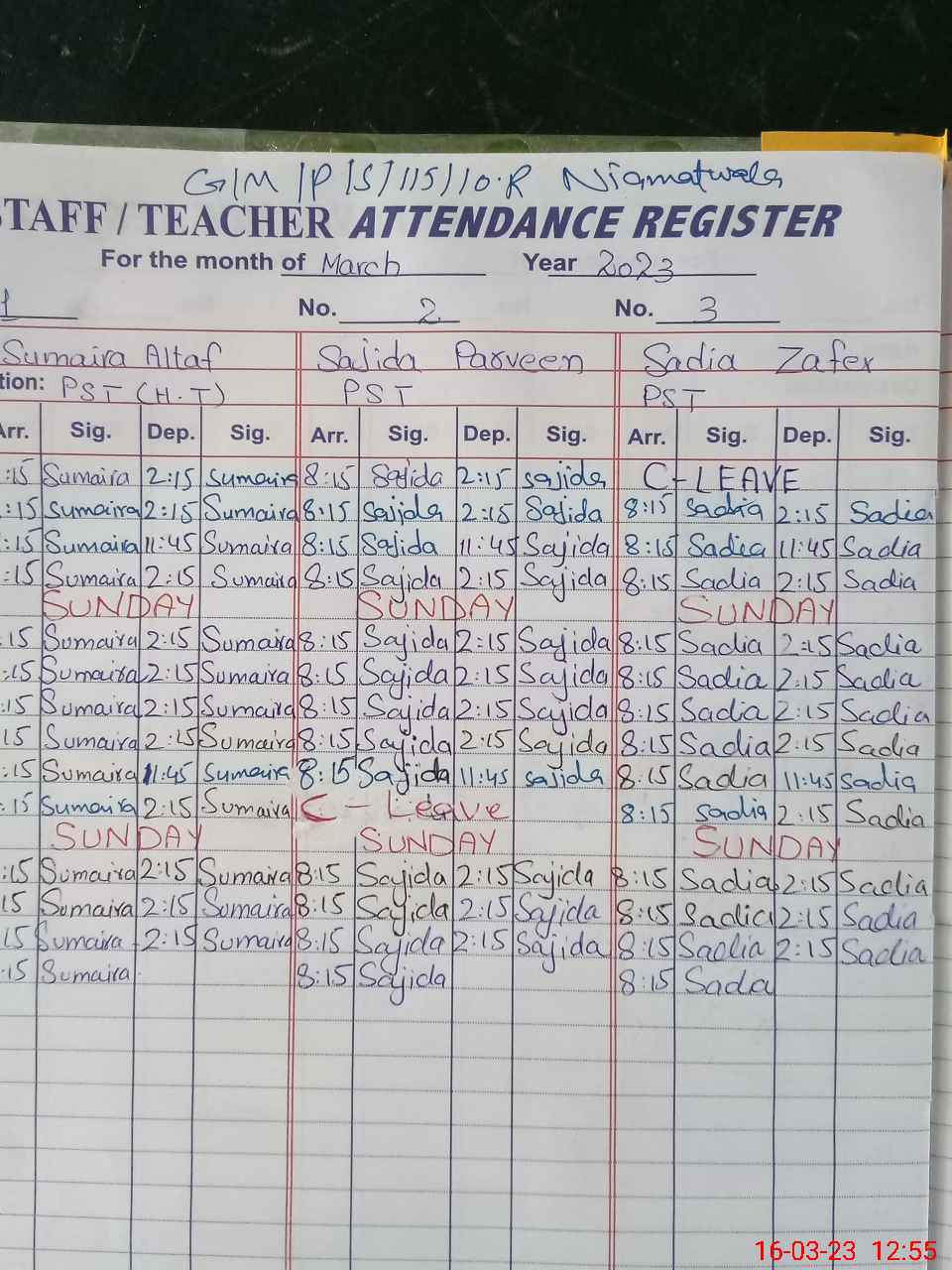 | Name: Su**** Al**** Designation: (School Headmaster's/Headmistress's) PST Phone/Cell Number: 03**** |