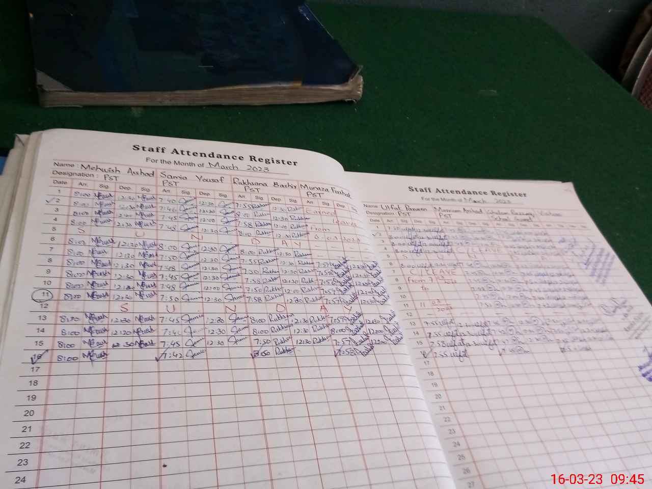 | Leave | Duty | Absent | Maternity | Medical | Ex- Pak |