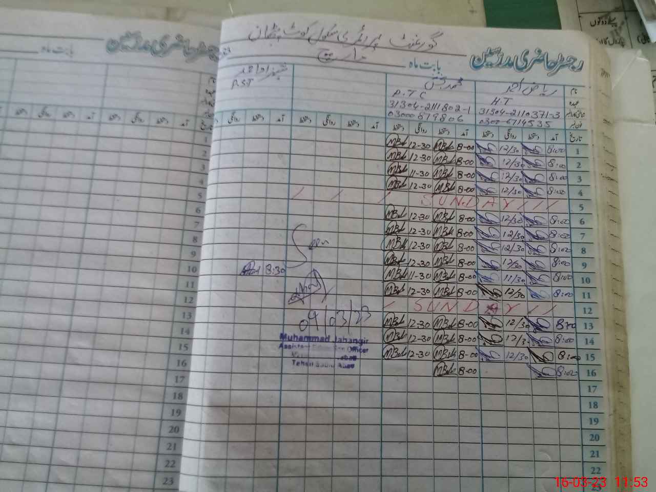| Name: Ri**** Ah**** Designation: (School Headmaster's/Headmistress's) PST Phone/Cell Number: 03**** |