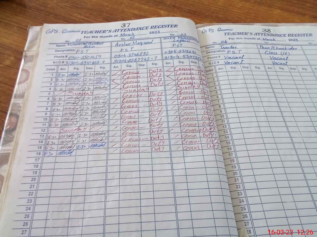 | Name: MAr**** Ra**** Designation: (School Headmaster's/Headmistress's) PST Phone/Cell Number: 03**** |