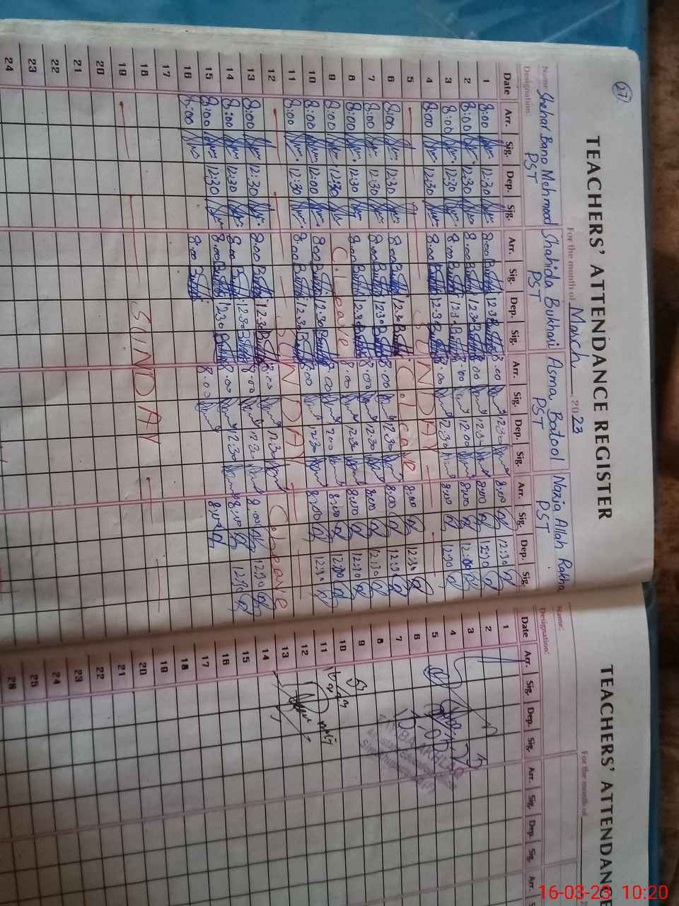 | CNIC | Full Name | Designation | R/C | Absence During Last Calender Month |