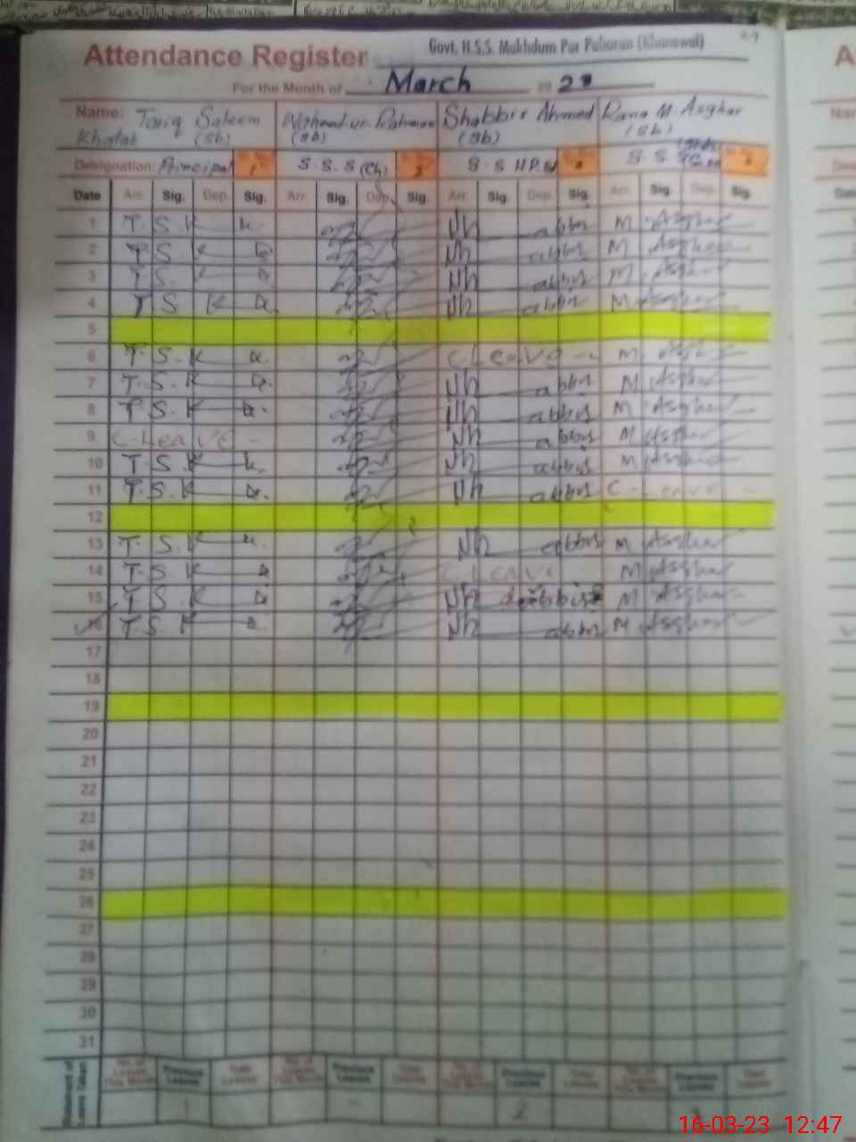 | No. of Students Present - Female | 0 | 0 | 0 | 0 | 0 | 0 | 0 | 0 | 0 | 0 | 0 | 0 | 0 | 0 | 0 | 0 |
