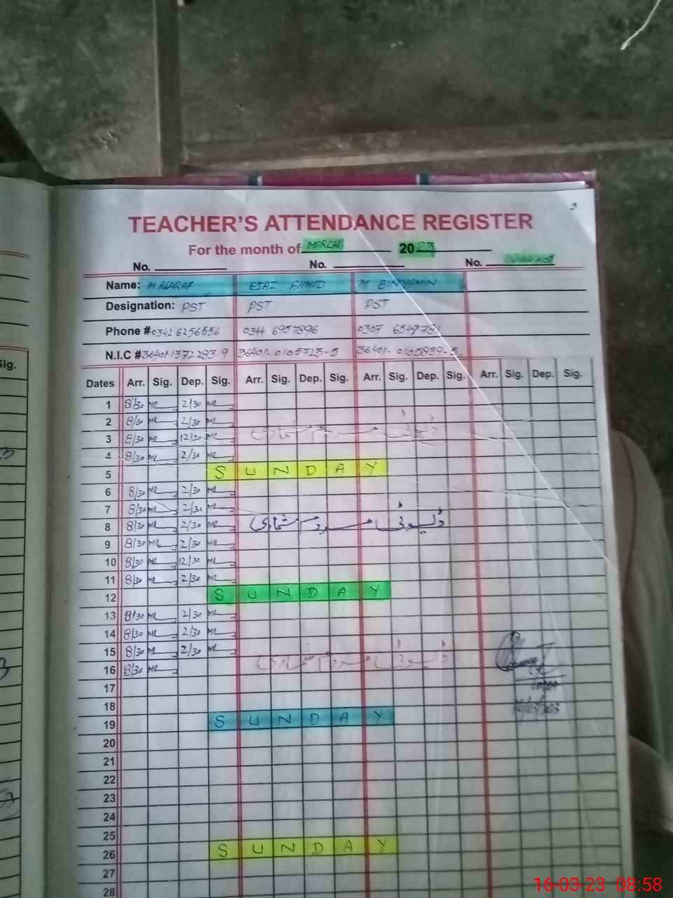 | Name: MU**** AS**** Designation: (School Headmaster's/Headmistress's) PST Phone/Cell Number: 03**** |