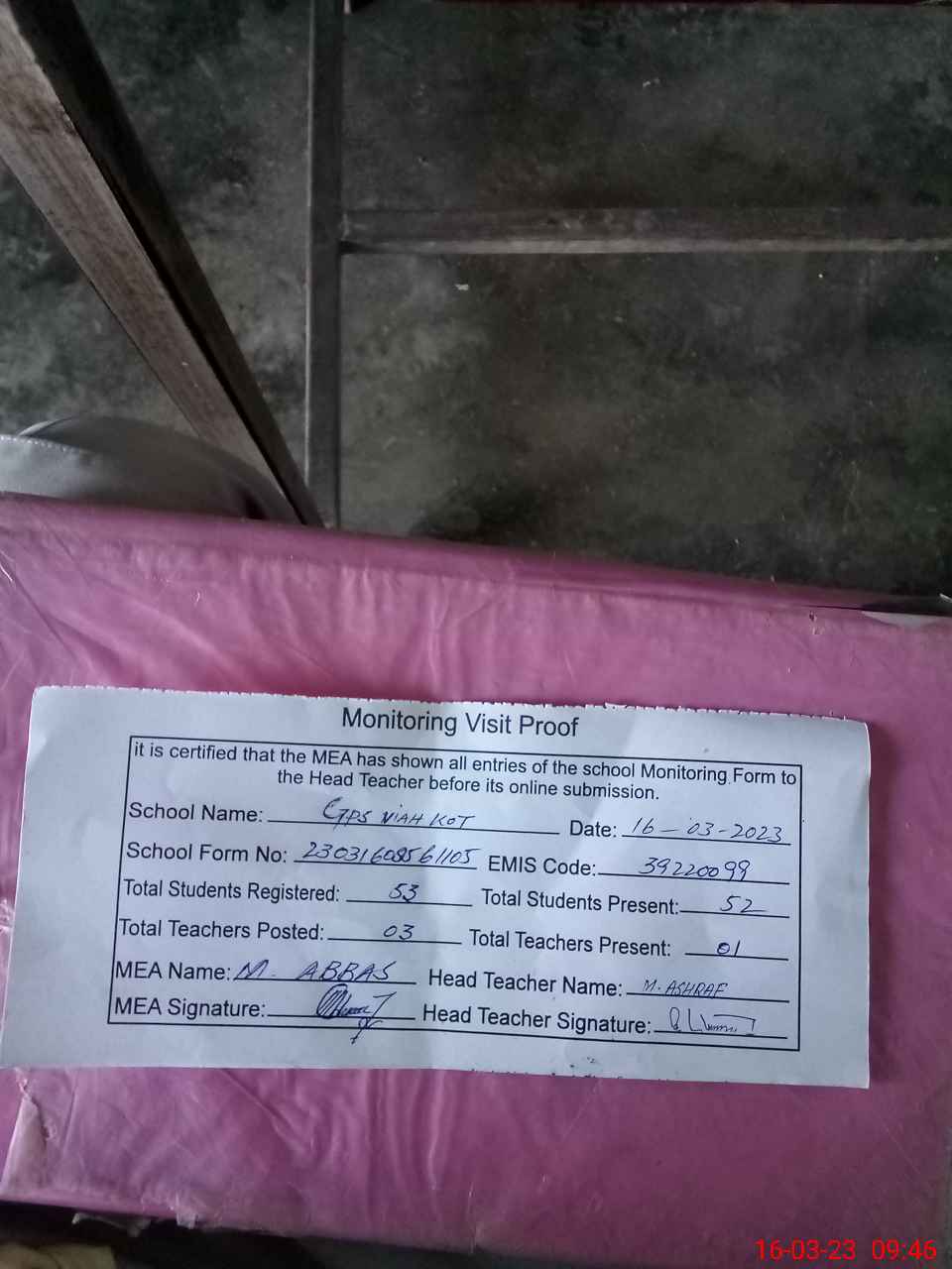 | EMIS Code: 39220099 | Name of School: GPS VIAH KOT | |||
