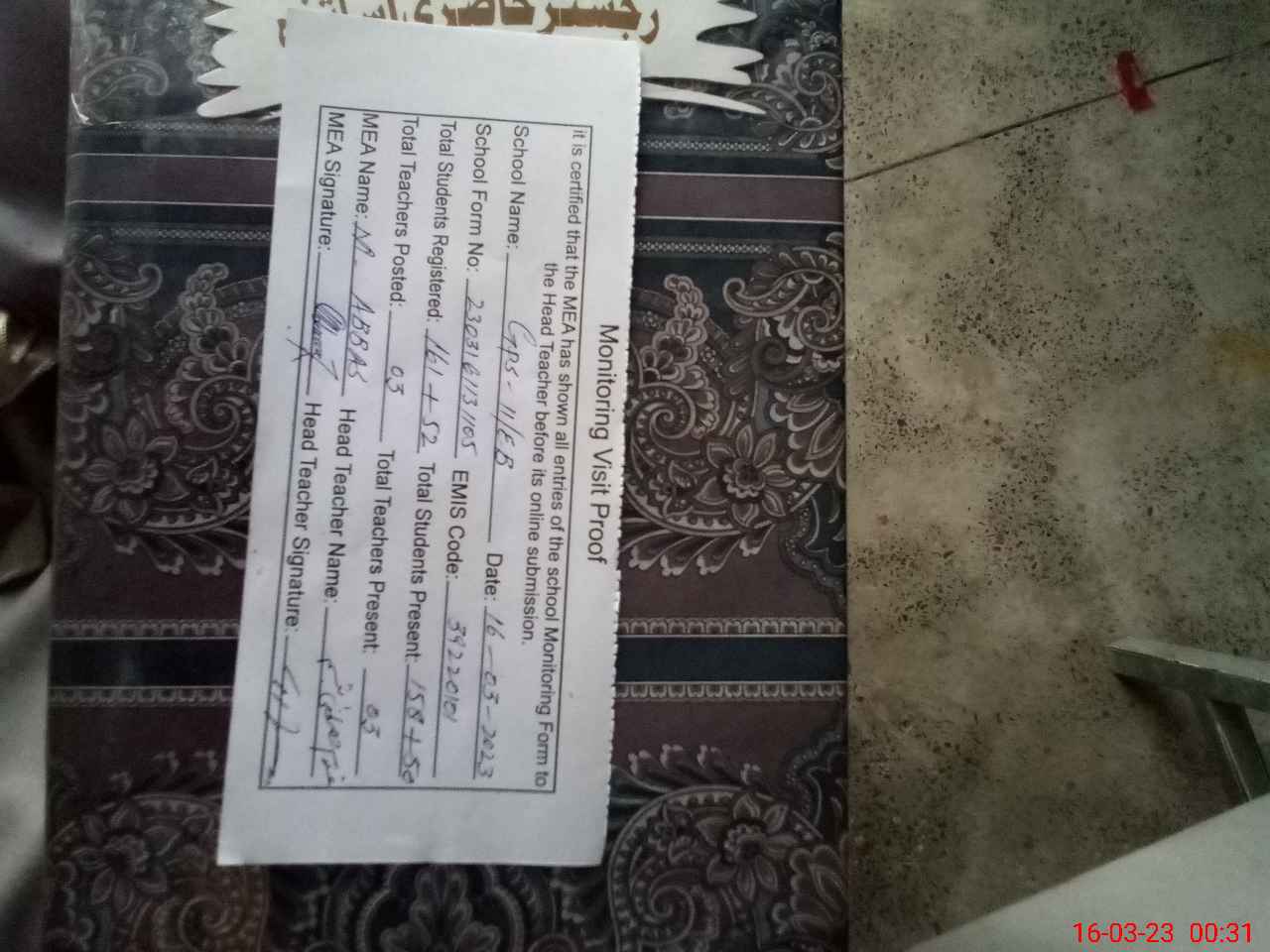| Certified that this School was Inspected by the Undersigned MEA/DMO Today and the Information Stated Above is as Per Record. | |||||