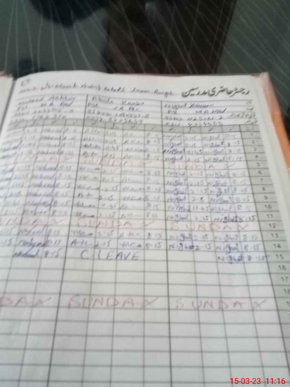 | CNIC | Full Name | Designation | R/C | Absence During Last Calender Month |