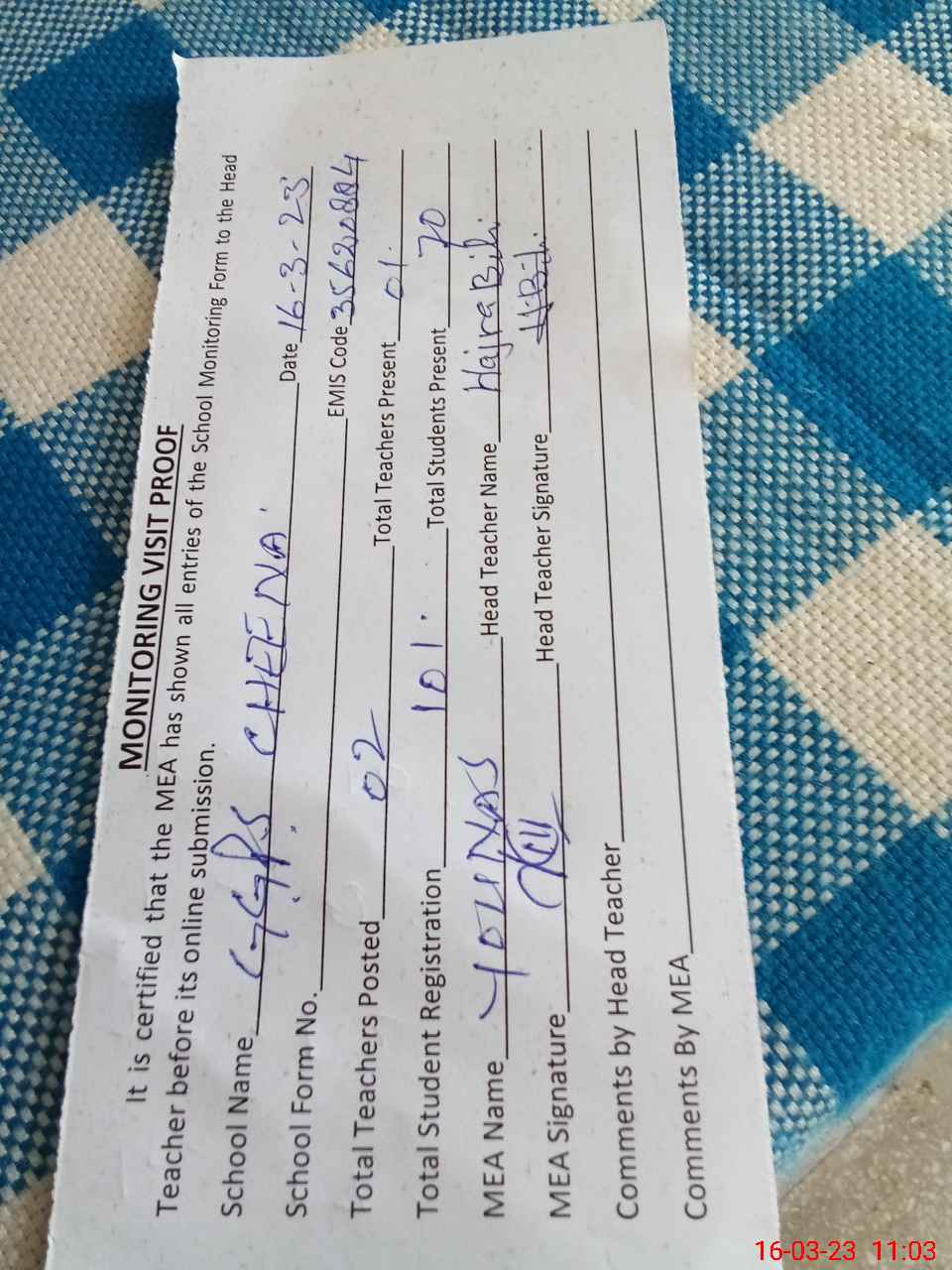 | EMIS Code: 35620884 | Name of School: GGPS CHEENA VIRKAN | |||