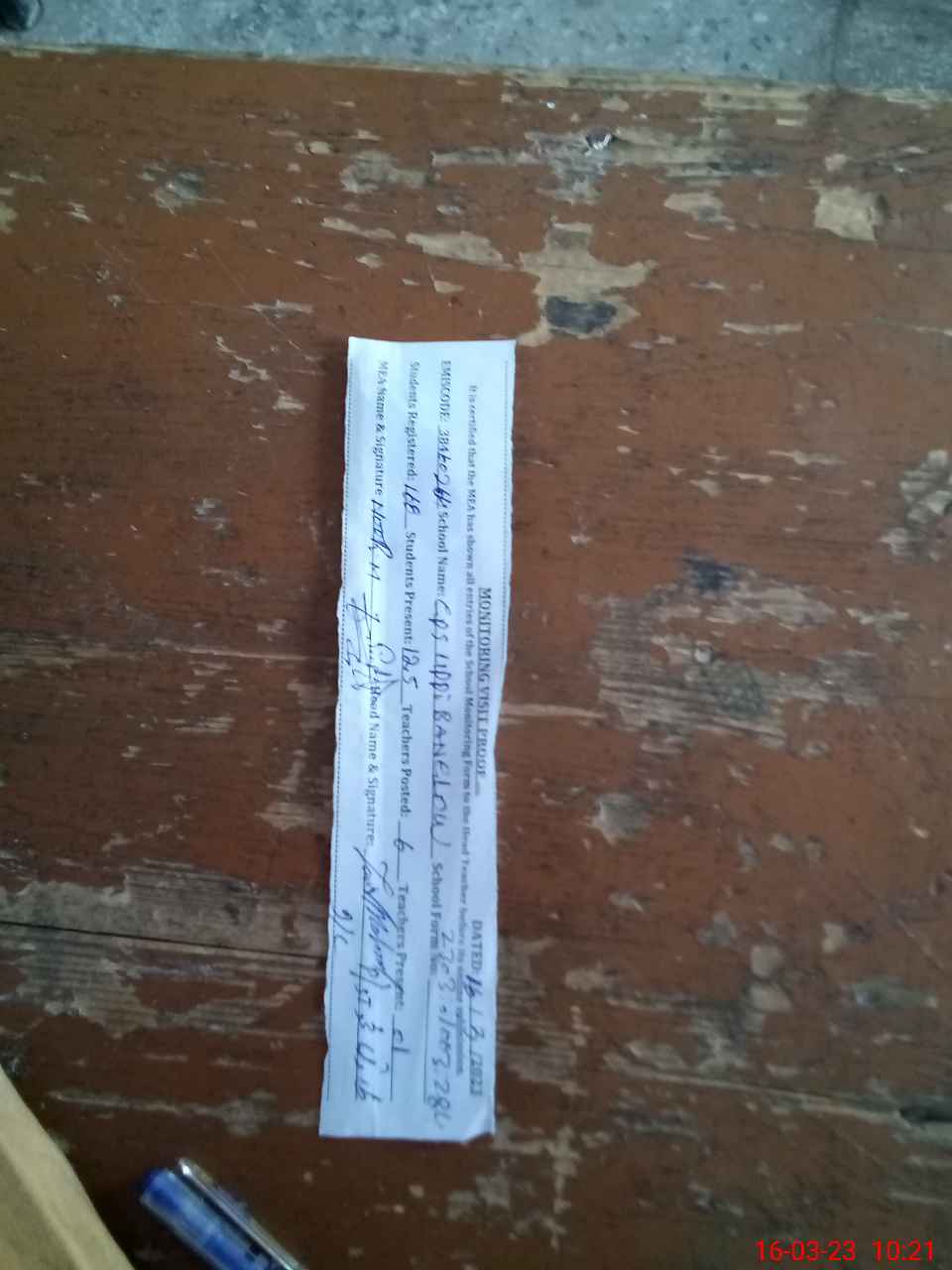 | Attendance Register | Head Teacher | MEA with School | Visit Proof |