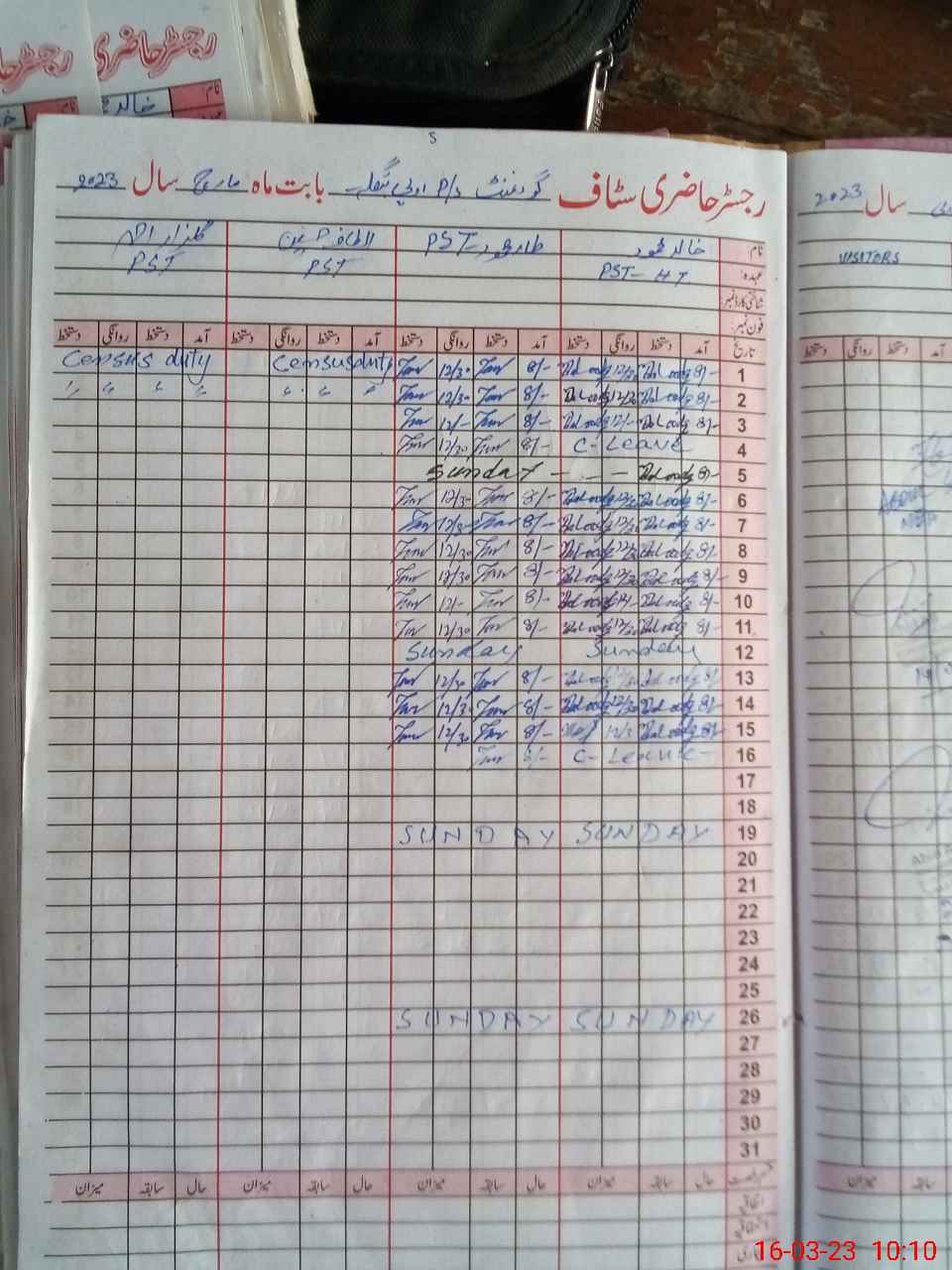 | CNIC | Full Name | Designation | R/C | Absence During Last Calender Month |