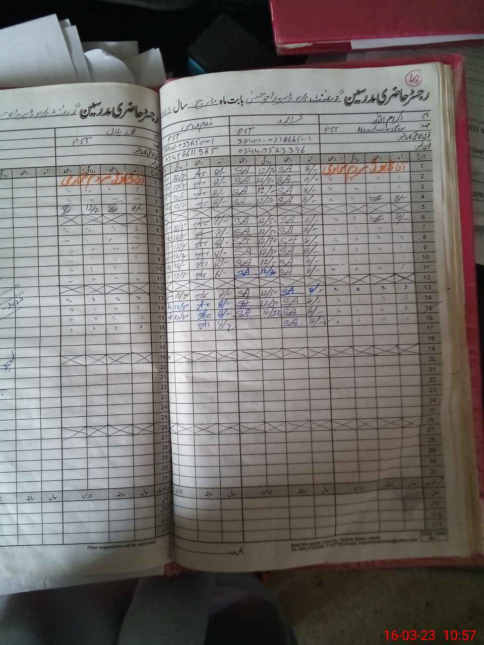 | Name: IK**** UL**** Designation: (School Headmaster's/Headmistress's) PST Phone/Cell Number: 03**** |