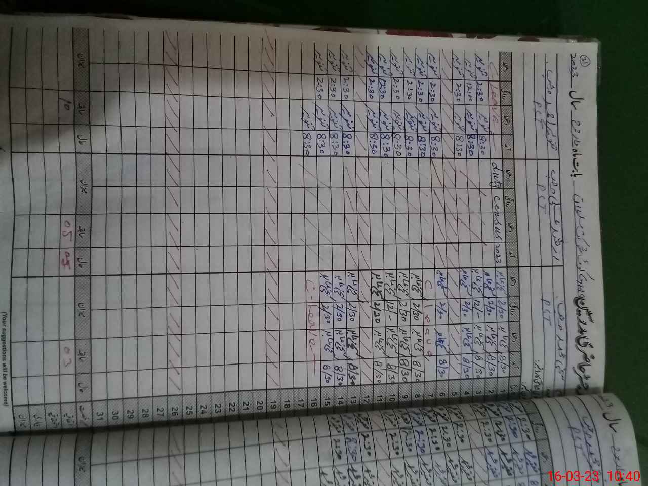 | Leave | Duty | Absent | Maternity | Medical | Ex- Pak |