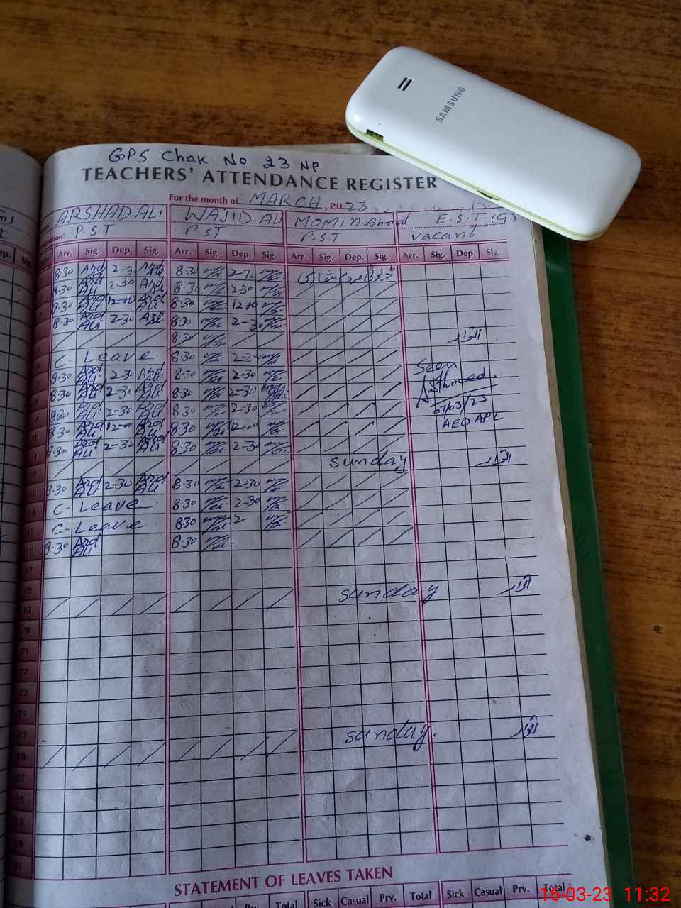 | EMIS Code: 31340327 | Name of School: GPS CHAK NO 23/NP | |||