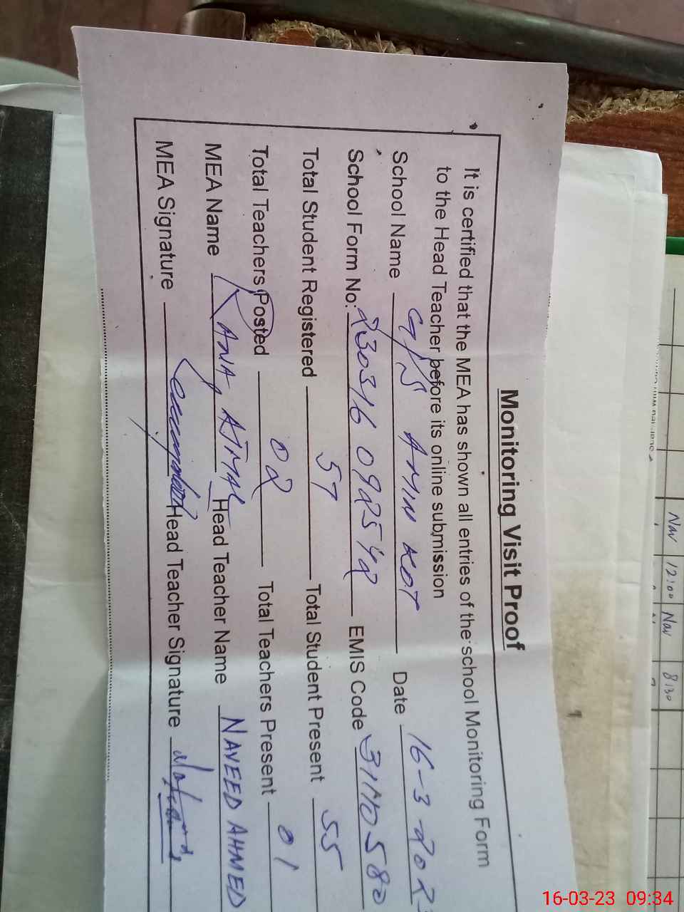 | EMIS Code: 31110580 | Name of School: GPS KOT AMIN KHAN | |||
