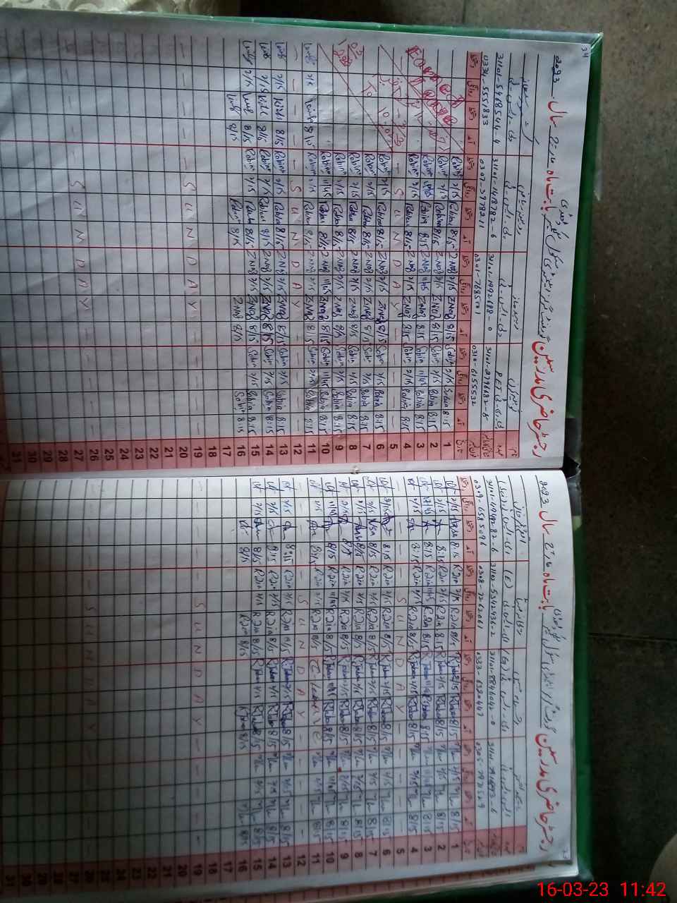 | CNIC | Full Name | Designation | R/C | Absence During Last Calender Month |