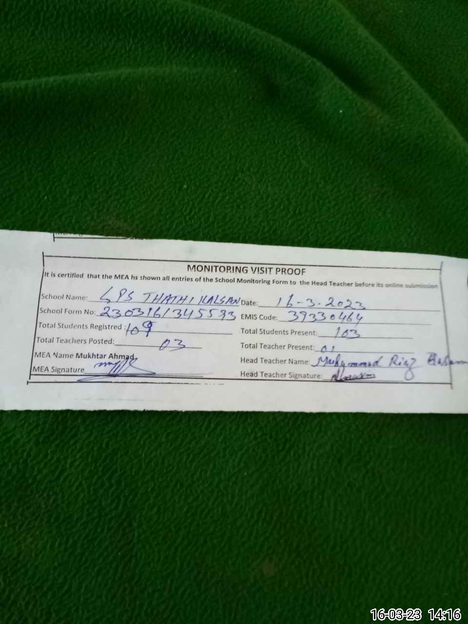| EMIS Code: 39330464 | Name of School: GPS THATHI KALSAN | |||
