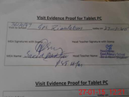 | Attendance Register | Head Teacher | MEA with School | Visit Proof |