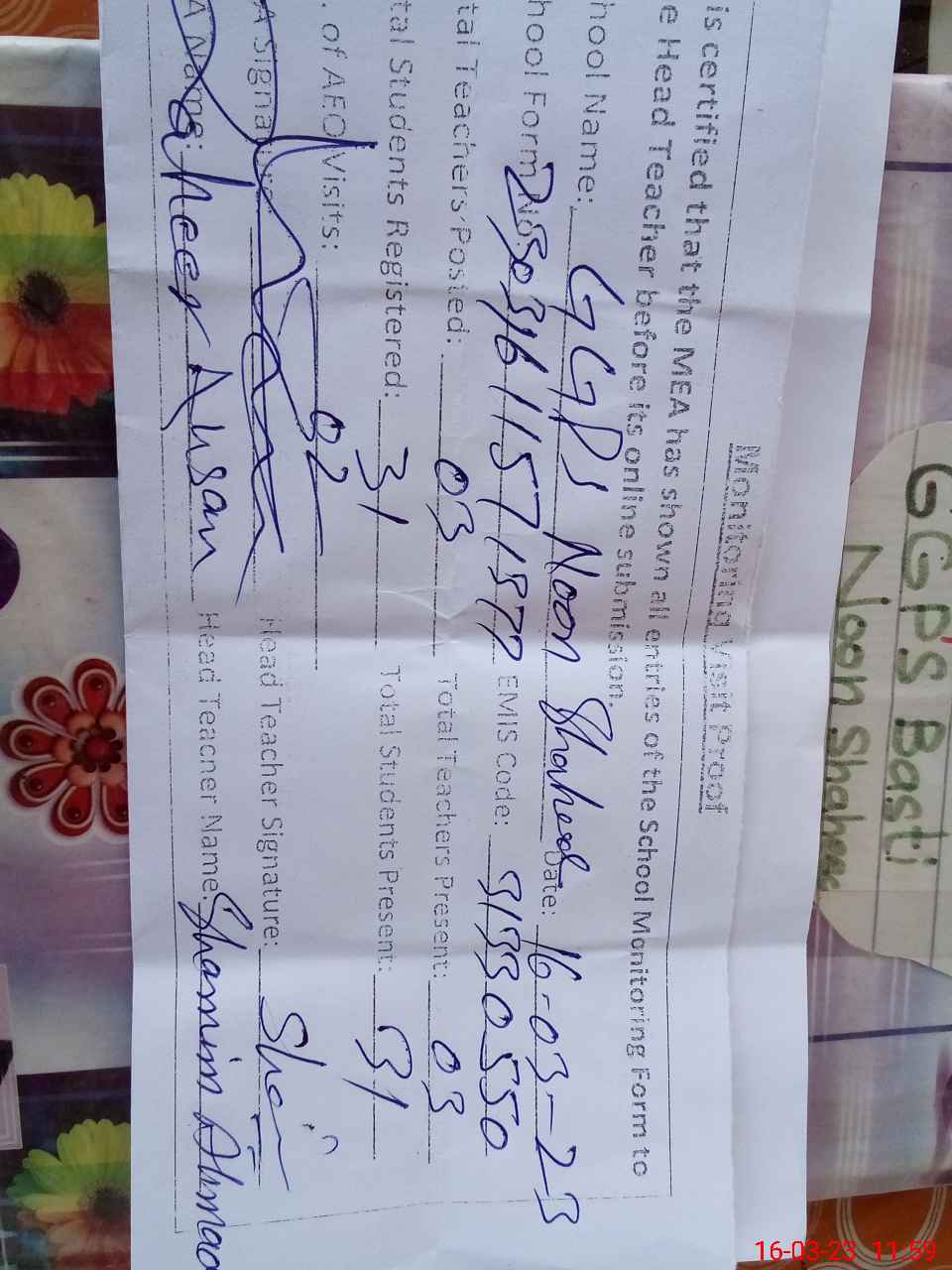 | EMIS Code: 31330550 | Name of School: GGPS BASTI NOON SHAHEED | |||