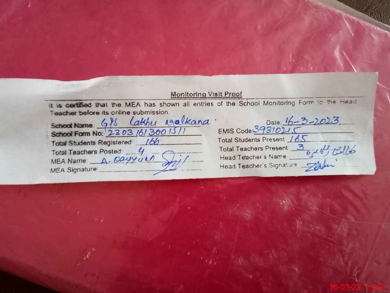 | EMIS Code: 39310215 | Name of School: GPS LAKHU MALKANA | |||