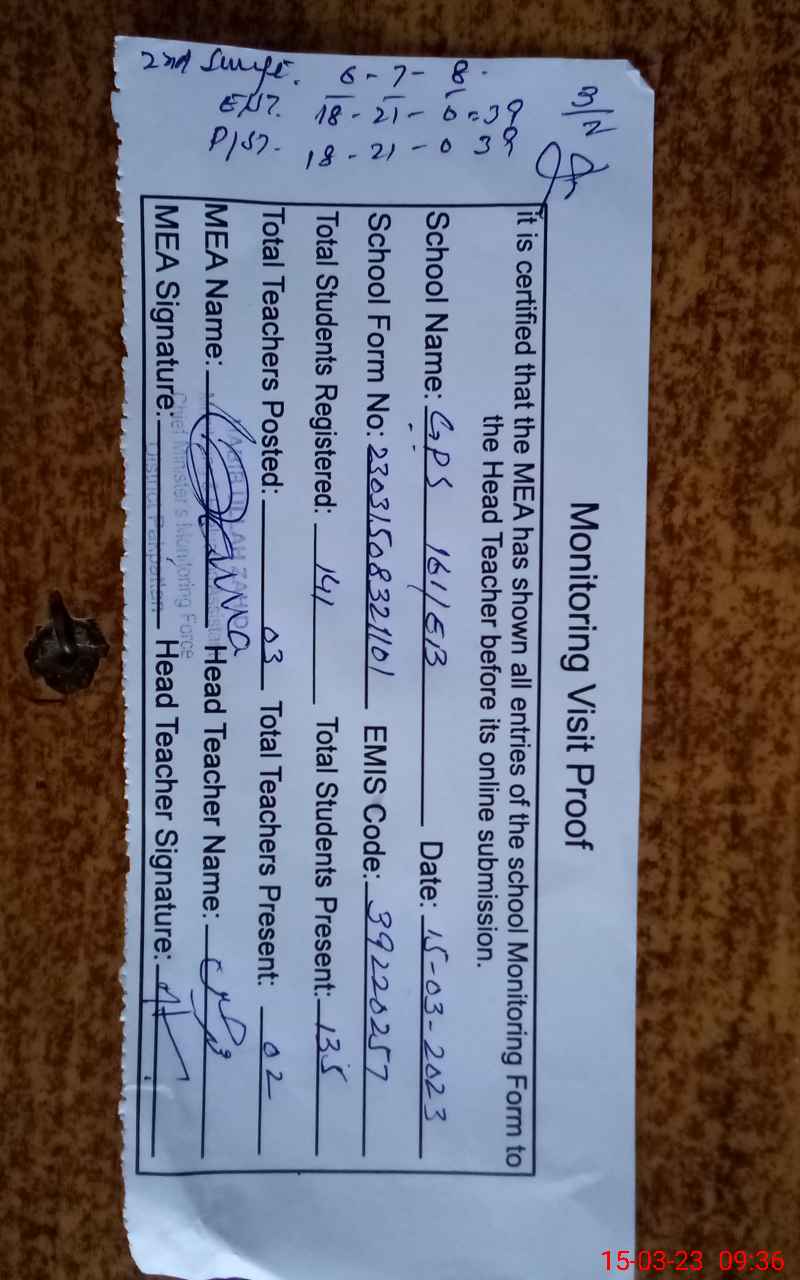 | EMIS Code: 39220257 | Name of School: GPS 161 EB | |||
