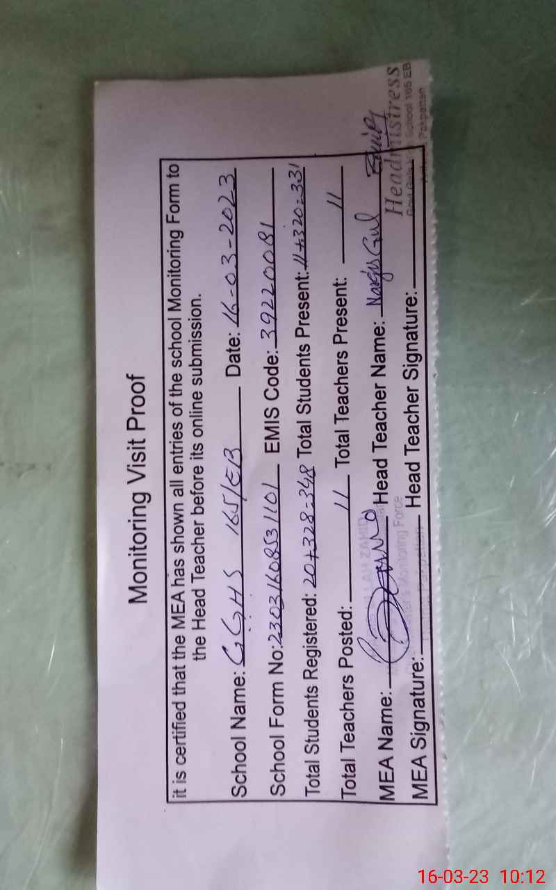| EMIS Code: 39220081 | Name of School: GGHS 165 EB P/O 163 EB | |||