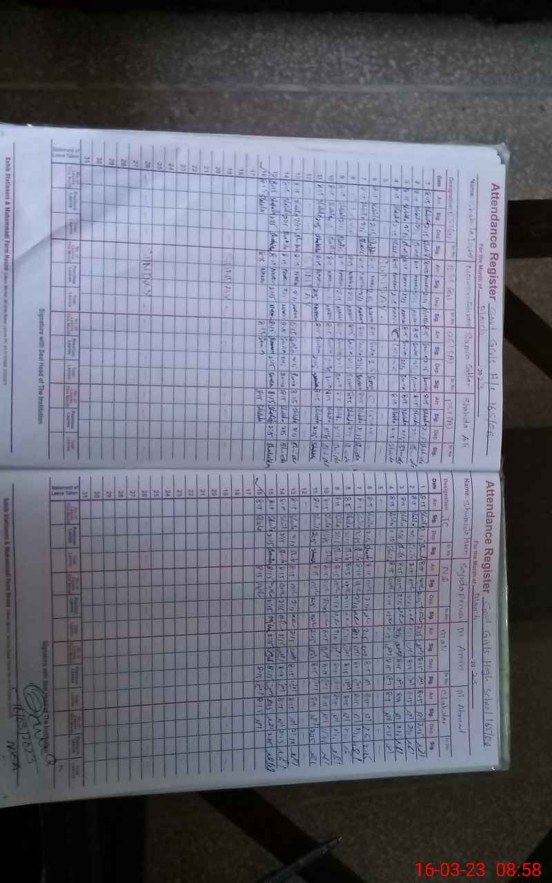 | Name: NA**** GU**** Designation: (School Headmaster's/Headmistress's) SST (SCIENCE) Phone/Cell Number: 03**** |