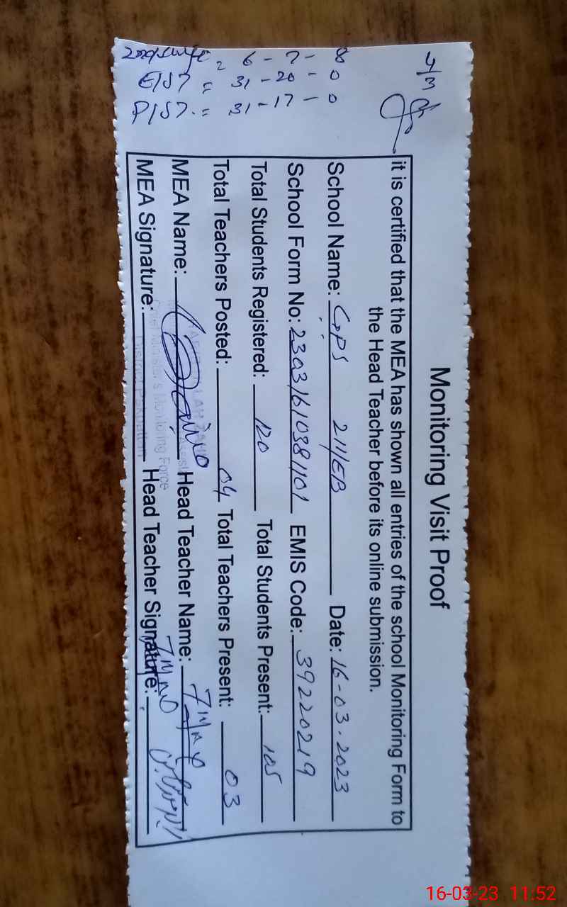 | EMIS Code: 39220219 | Name of School: GPS 211 EB | |||