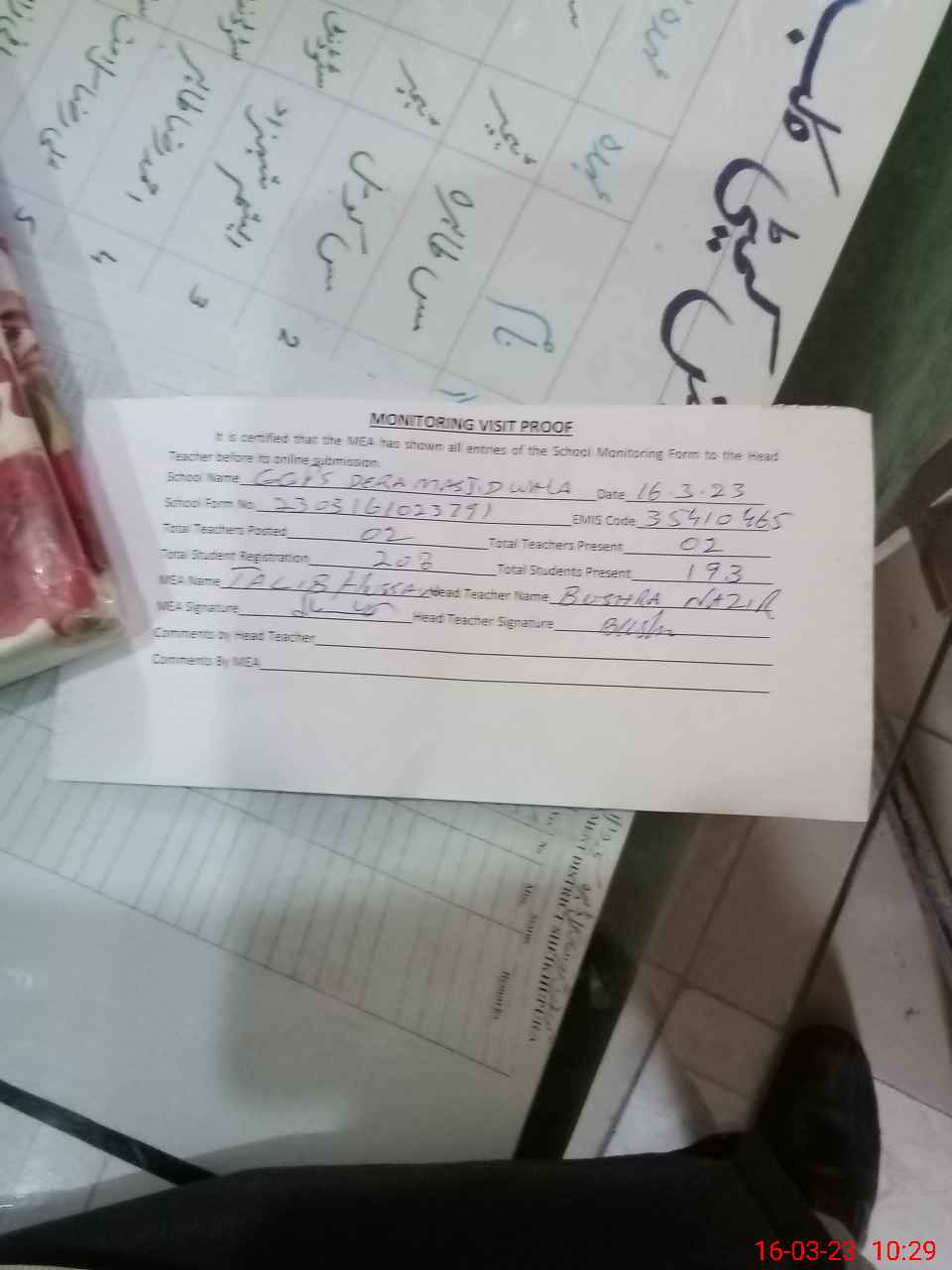 | EMIS Code: 35410465 | Name of School: GGPS DERA MASJID WALA | |||