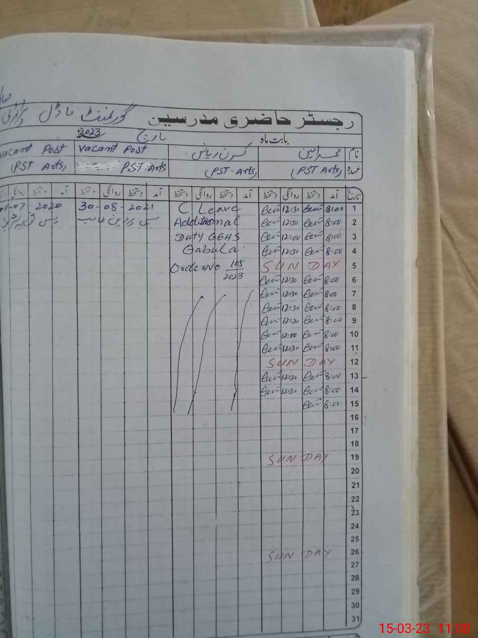 | Name: MU**** AM**** Designation: (School Headmaster's/Headmistress's) PST Phone/Cell Number: 03**** |