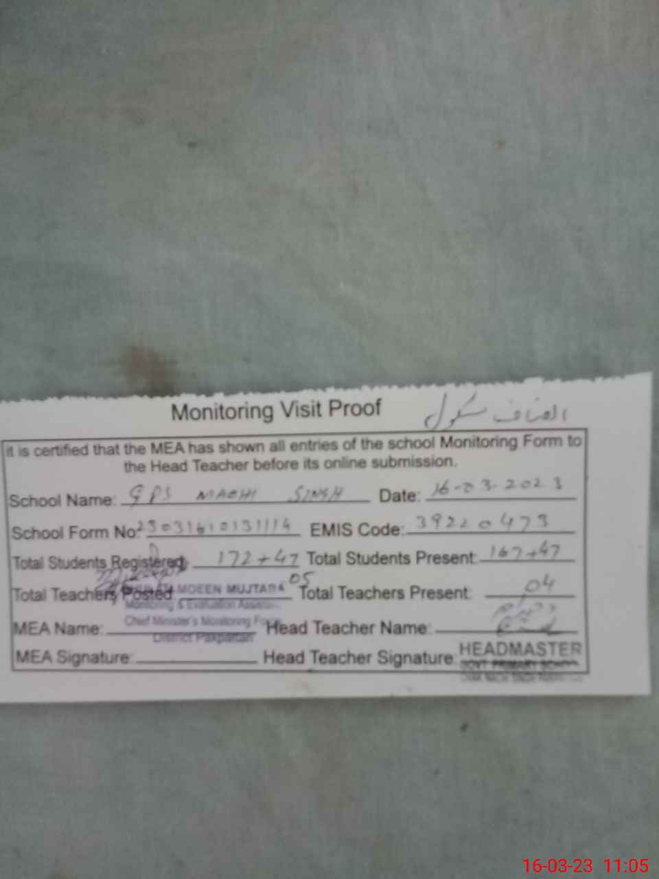 | EMIS Code: 39220473 | Name of School: GPS CHAK MACHI SINGH | |||