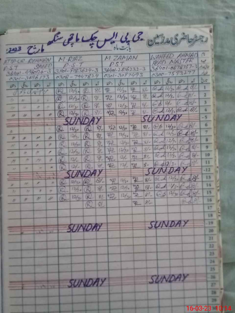 | Name: Mu**** Ri**** Designation: (School Headmaster's/Headmistress's) PST Phone/Cell Number: 03**** |