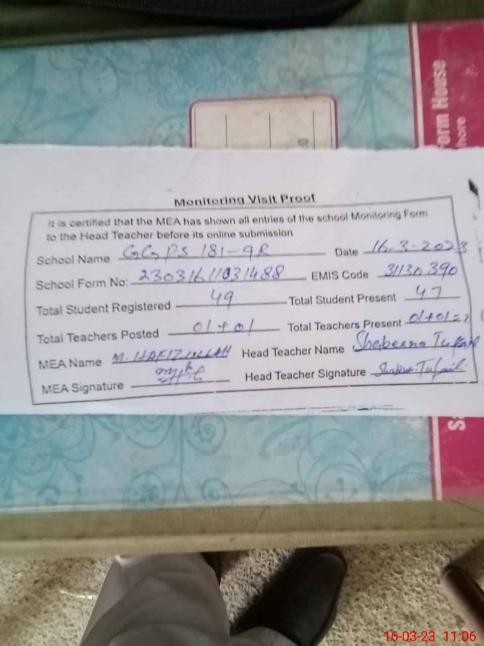 | EMIS Code: 31130390 | Name of School: GGPS CHAK NO 181/7-R (EAST) | |||