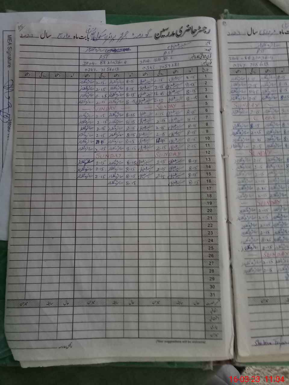 | Name: Sh**** Tu**** Designation: (School Headmaster's/Headmistress's) PST Phone/Cell Number: 03**** |