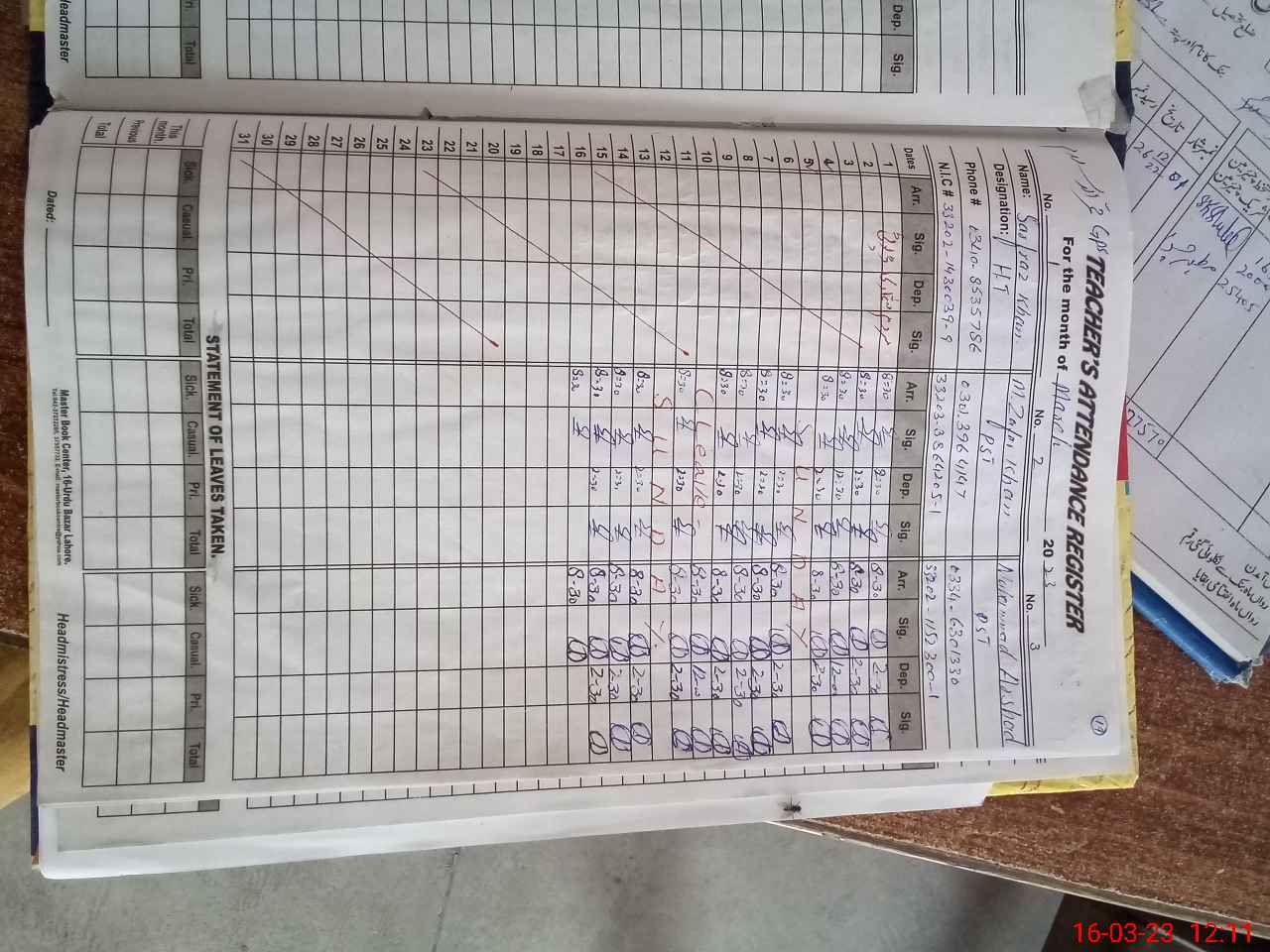 | Name: MU**** NA**** Designation: (School Headmaster's/Headmistress's) PST Phone/Cell Number: 03**** |
