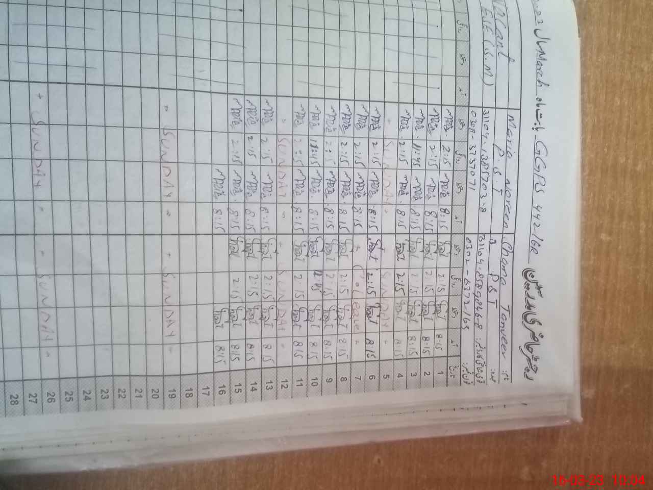 | CNIC | Full Name | Designation | R/C | Absence During Last Calender Month |