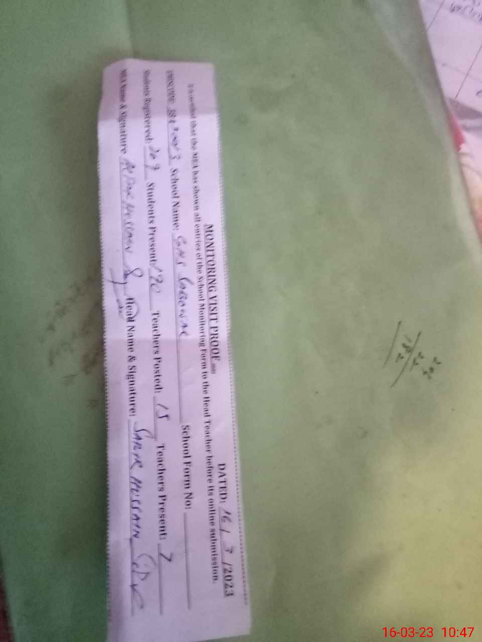 | Attendance Register | Head Teacher | MEA with School | Visit Proof |
