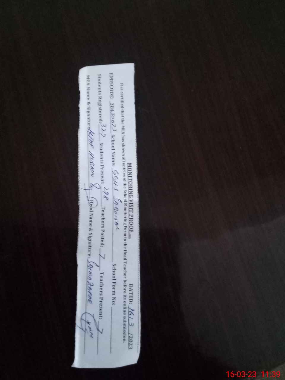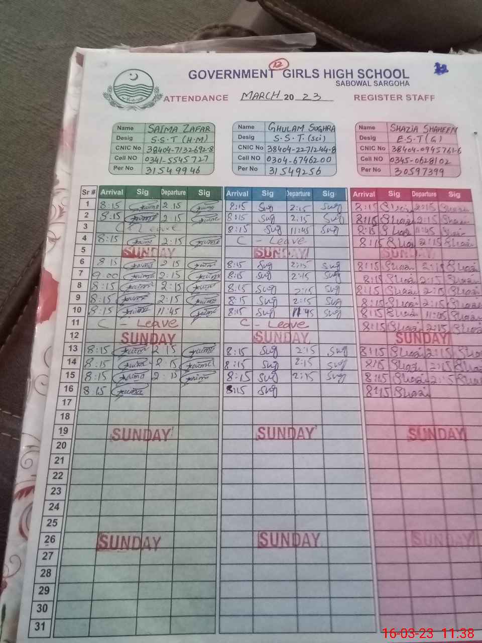 | Name: SA**** ZA**** Designation: (School Headmaster's/Headmistress's) SST Phone/Cell Number: 03**** |
