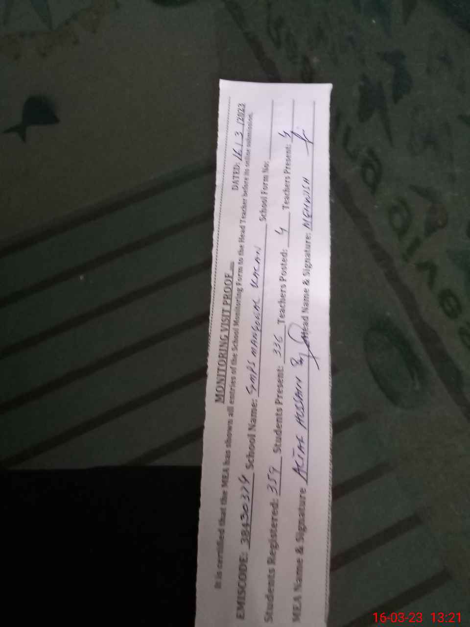 | Attendance Register | Head Teacher | MEA with School | Visit Proof |