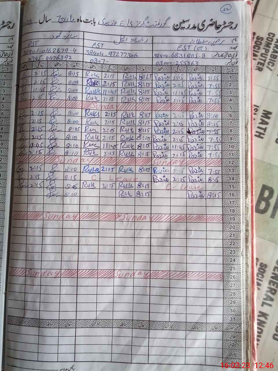 | CNIC | Full Name | Designation | R/C | Absence During Last Calender Month |