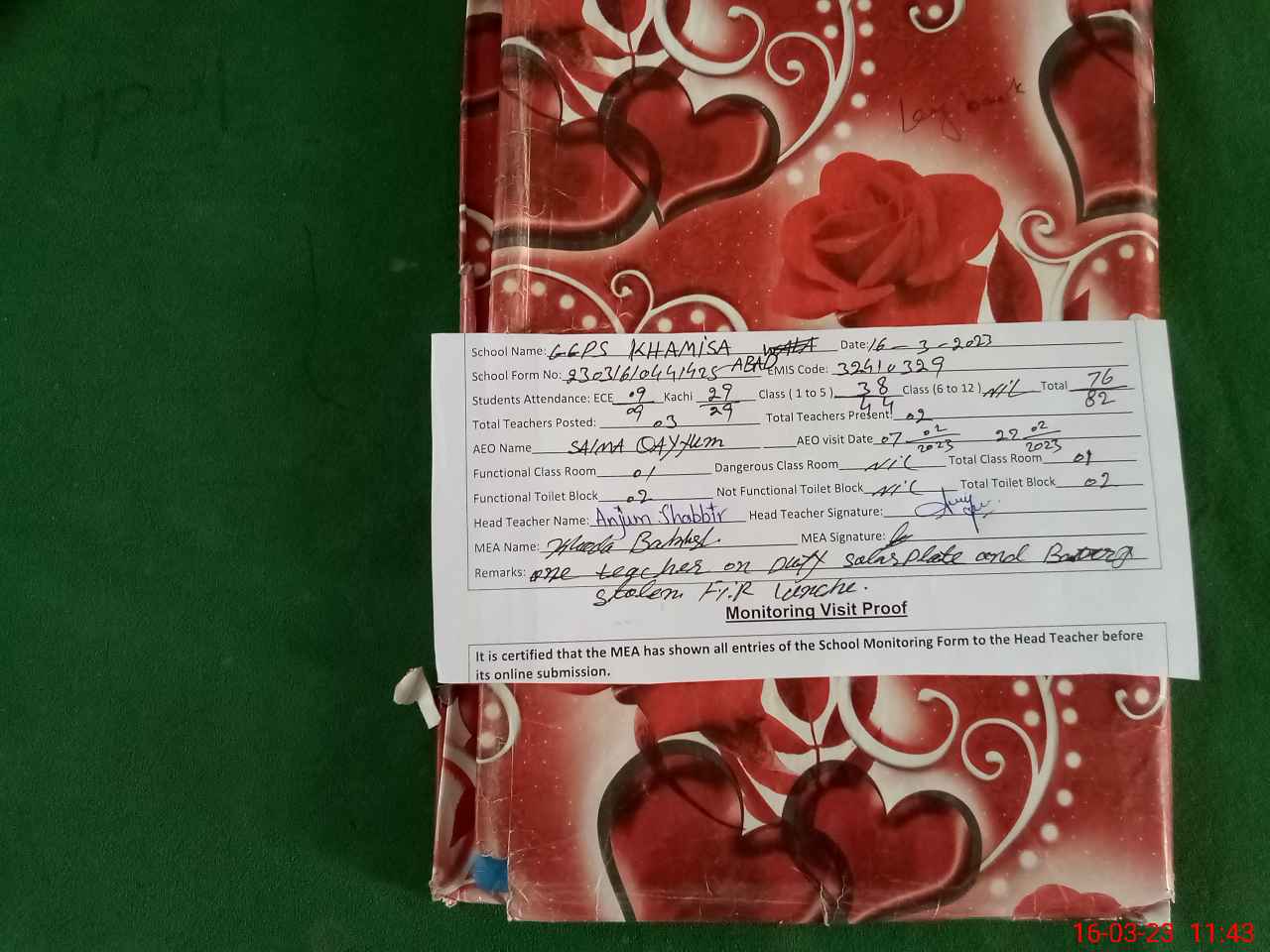 | EMIS Code: 32410329 | Name of School: GGPS KHAMISA ABAD | |||