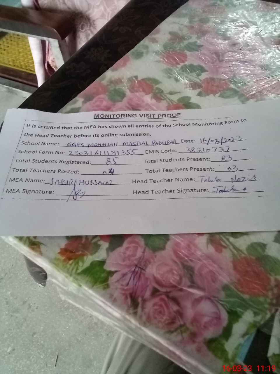 | EMIS Code: 38210737 | Name of School: GGPS MOHALLAH MASTIAL PADHRAR | |||