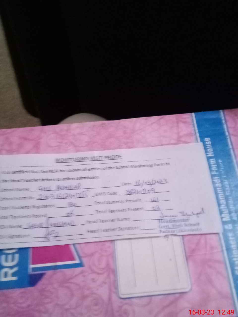 | EMIS Code: 38210909 | Name of School: GHS PADHARAR | |||