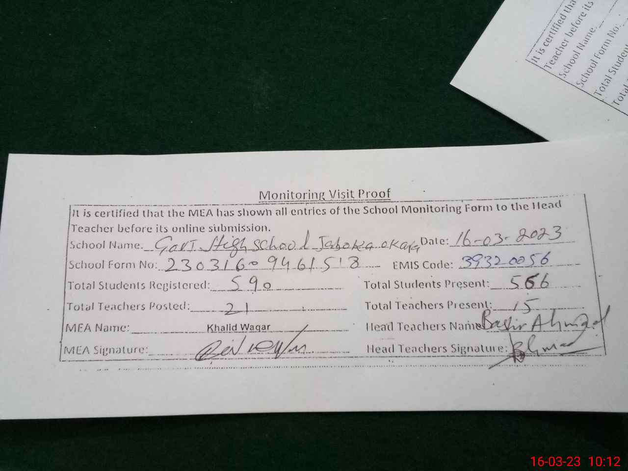 | Certified that this School was Inspected by the Undersigned MEA/DMO Today and the Information Stated Above is as Per Record. | |||||